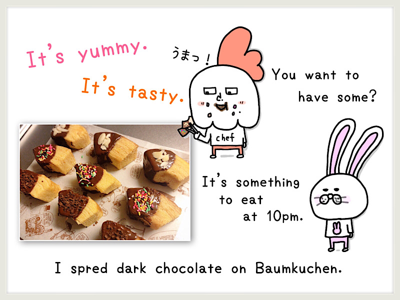 増える 英語【increase】 2023年11月25日 18:00 カロリーを増やすの楽しい。貰い物のバームクーヘンにダークチョコレート塗りました。増える ↪︎ increaseにほんブログ村 スポンサー 「食べ物」カテゴリの最新記事 スポンサー < 前の記事次の記事 > コメント コメントフォーム 名前 コメント 記事の評価 リセット リセット 顔 星 情報を記憶 コメントを投稿する